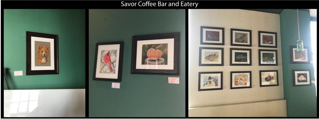 Which brings me to the BIG NEWS!!!! I now have my very own solo art exhibition. You heard me right. 31 of my paintings/ drawings are now on display today through April 16th, 2023 at Savor Coffee Bar and Eatery. Each piece is also for sale as well. Stop on by and check it out! If you do, feel free to take a picture of you with my art (or just my art for non-selfie peeps) and post on Facebook and tag my art page Davet Fine Art or on Instagram – Dave Fine Art.