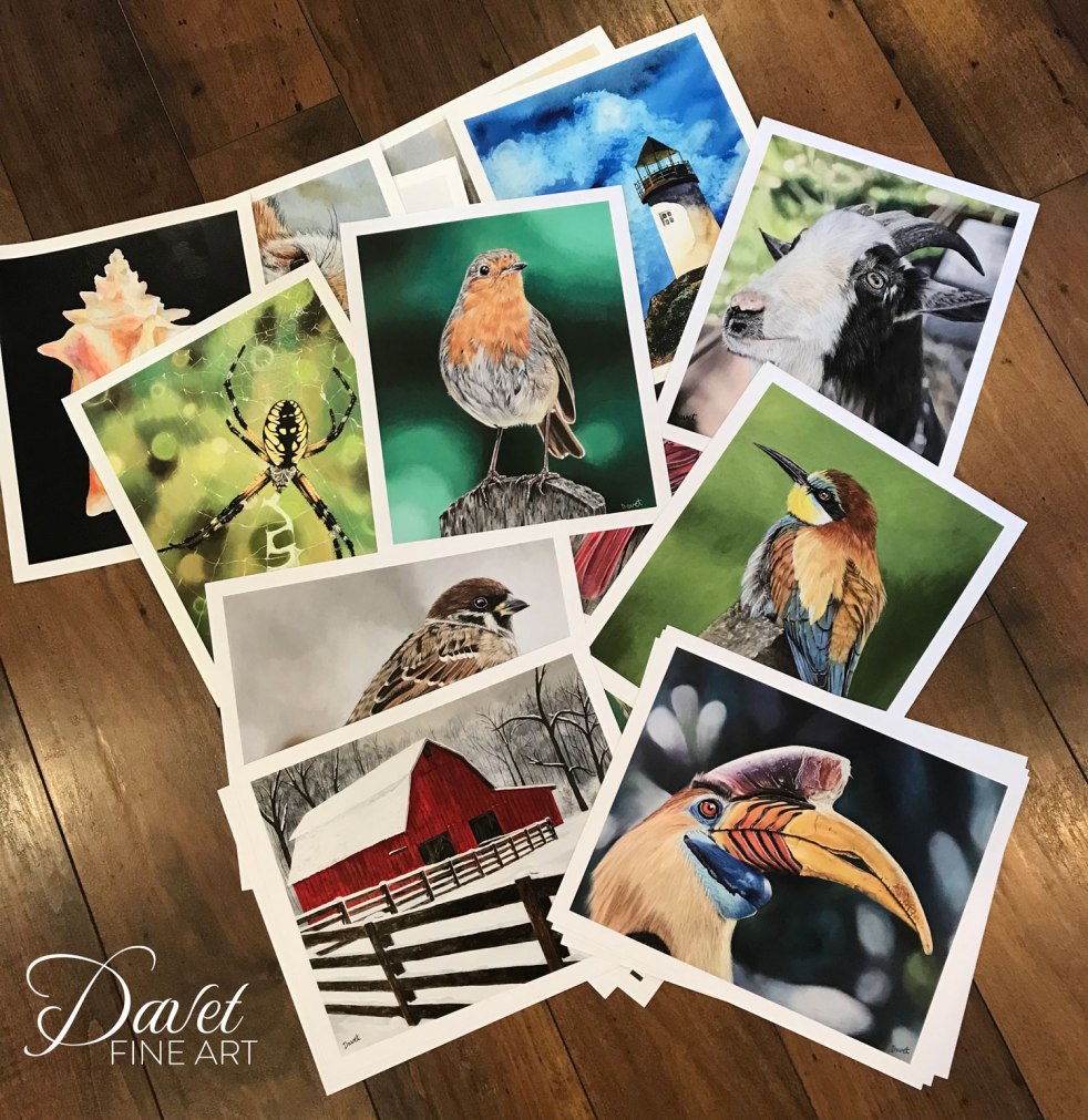 Before I offer a print for sale, I order samples in various sizes and papers. Once I approve of the quality, I will add it here for sale. Listed below is a picture of the art print, not the original art. I do my best to take a decent picture to give an accurate representation of the art print, but it’s just a quick photo. If you need a size not listed, just email me at davetdesigns@gmail.com with your request. Due to the nature of art prints, it will vary in color, texture, size, etc from the original art. However, I only sell prints that I approve of the artist quality of print, even if it doesn’t match the original exactly. Not all of my artwork will be made into prints for this reason.
